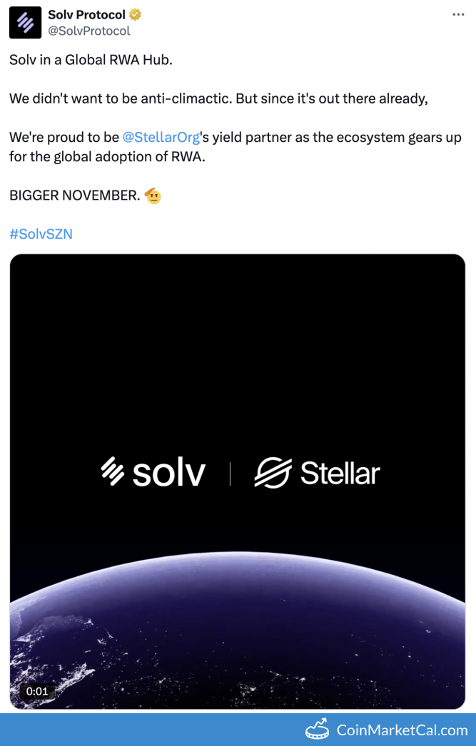 | 05.11.2025 | Solv Stellar Partnership | Partnership | SOLVBTC : Solv Protocol BTC SOLV : Solv Protocol XSOLVBTC : Solv Protocol Staked BTC SOLVBTC.BERA : Solv Protocol SolvBTC.BERA SOLVBTC.TRADING : SolvBTC Trading Strategies Vault SOLVBTC.JUP : Solv Protocol SolvBTC Jupiter XLM : Stellar | ![]() | Detay |