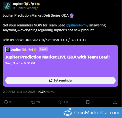 | 05.11.2025 | Prediction Market AMA | AMA | JUP : Jupiter | ![]() | Detay |