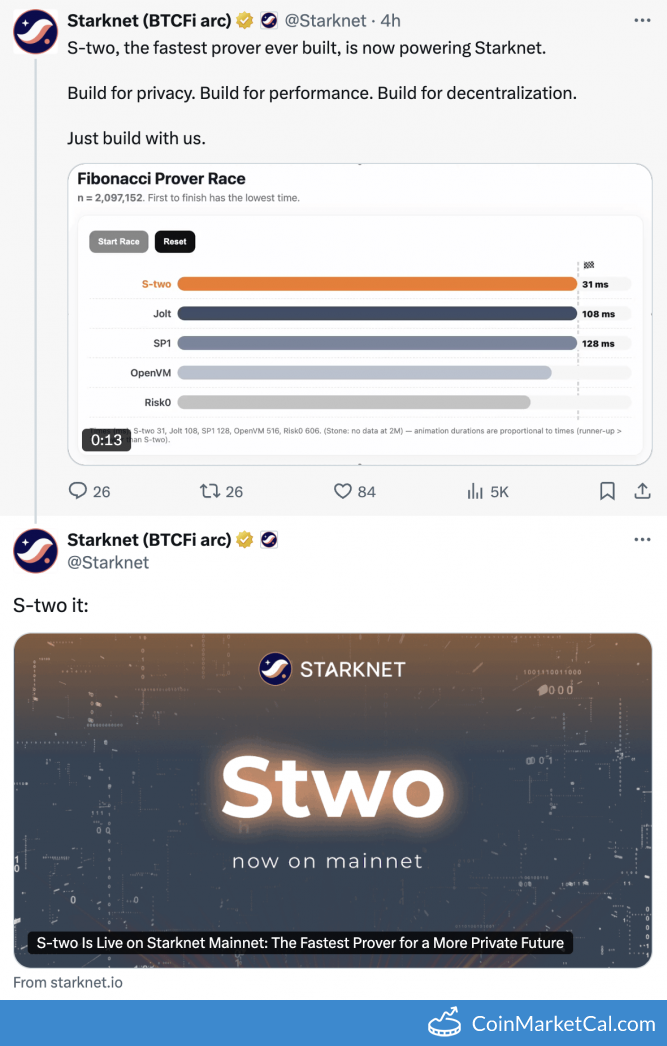| 05.11.2025 | S-Two Launch | Release | STRK : Starknet | ![]() | Detay |