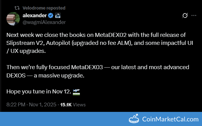 | 12.11.2025 | A New Horizon | Meetup | AERO : Aerodrome Finance VELO : Velodrome Finance | ![]() | Detay |