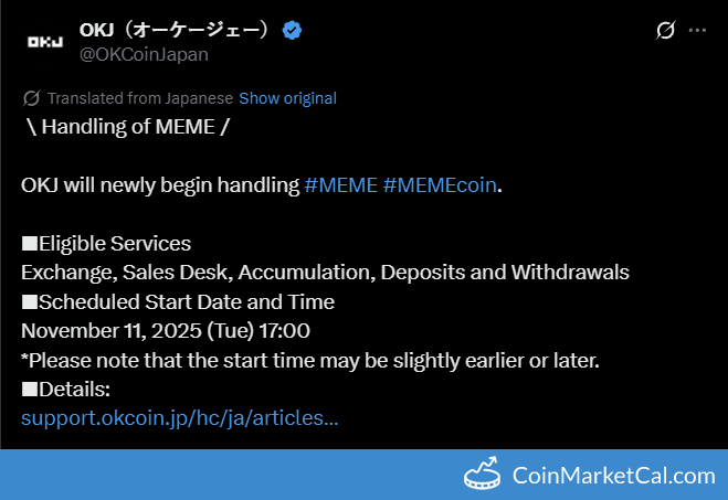 | 11.11.2025 | OKJ Listing | Exchange | MEME : Memecoin | ![]() | Detay |