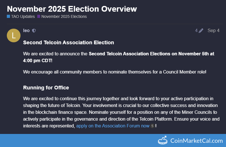 | 05.11.2025 | Association Elections | Other | TEL : Telcoin | ![]() | Detay |