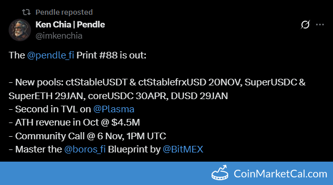| Bugün 06.11.2025 | Community Call | Team Update | PENDLE : Pendle | ![]() | Detay |