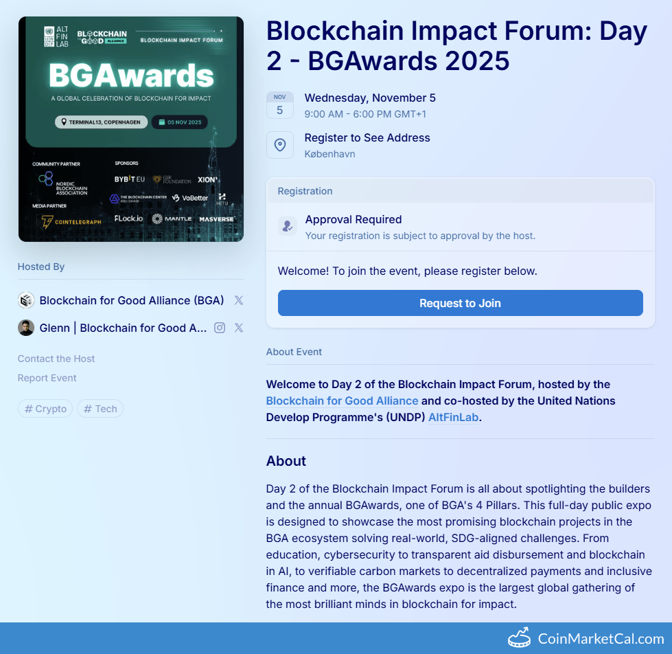 | 05.11.2025 | Blockchain Impact Forum | Conference | ADA : Cardano CRYPTO : General Event | ![]() | Detay |